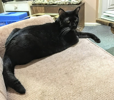 She is sufficiently self-contained to put up with a writer who spends large chunks of time at a computer. Unlike most cats, she has never attempted to come anywhere near the computer, let alone get between me and it. If I won't give her my attention, she doesn't keep demanding it. Perhaps she knows she'll get some later; but no other cat I've ever had has shown that degree of patience.